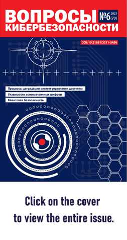 Balyabin, A. A. METHOD OF ENSURING CYBER RESISTANCE BLOCKCHAIN PLATFORMS BASED ON CYBER IMMUNITY / A. A. Balyabin, S. A. Petrenko // Cybersecurity issues. – 2025. – № 6(70). – С. 127-139. – DOI: 10.21681/2311-3456-2025-6-127-139.AbstractPurpose of the research: ensuring the resilience of cloud blockchain ecosystems and platforms of the ‘Data Economy’ of the Russian Federation based on cyber immunity in the face of hybrid quantum-classical attacks. Methods of the research: methods of system analysis, methods of probability theory and mathematical statistics, methods of the theory of stability of complex systems. Results of the research: the analysis of research in the subject area has demonstrated that existing methods for ensuring the resilience of various information and computing systems consider either classical or quantum threats and do not fully ensure the resilience of cloud blockchain platforms under hybrid attacks characterized by the presence of both threat types. To resolve this problematic situation, an objective has been set to develop a novel method for ensuring the resilience of cloud blockchain platforms based on cyber immunity, and a hypothesis has been formulated regarding the feasibility of achieving the research goal through the application of this method. A method for ensuring the resilience of cloud blockchain platforms based on cyber immunity under hybrid quantum-classical attacks has been developed, enabling compliance with the compromise-probability requirements under constraints on the execution time of a blockchain node’s program cycle by varying the cryptographic key length and the cyber immunity coverage coefficient. A study of the developed method has demonstrated the capability to achieve the required resilience of cloud blockchain platforms under hybrid quantum-classical attacks, and the conditions for the existence of a solution have been determined, thereby confirming the formulated hypothesis. Scientific novelty: the developed method is the first to take into account new conditions such as hybrid attacks on cloud blockchain platforms, which are formally described through newly introduced parameters of the number of quantum computer qubits available to the attacker and the proportion of malicious input data. Furthermore, the application of this method for the first time imbues cloud blockchain platforms with a new emergent property of cyber immunity, which consists of the ability to detect known and previously unknown attacks aimed at violating the semantics of computations, counter them, and restore normal operation if violations occur. Keywords: threats to information security, quantum threats to security, blockchain ecosystems and platforms, cybersecurity, cyber resilience, methods of analysis and synthesis of quantum-resistant blockchain. References1. Mourtzis, D., Angelopoulos, J., & Panopoulos, N. (2023). Blockchain Integration in the Era of Industrial Metaverse. Applied Sciences, 13, 3, 1353. DOI: 10.3390/app13031353. 2. Markov, A. S. (2023). Important milestones in open source software security. Cybersecurity issues, 1(53), 2–12. DOI: 10.21681/2311-3456-2023-1-2-12. 3. Gai, K., Guo, J., Zhu, L., & Yu, S. (2020). Blockchain Meets Cloud Computing: A Survey. IEEE Communications Surveys & Tutorials, 22, 3, 2009–2030. DOI: 10.1109/COMST.2020.2989392. 4. Khanna, A., Sah, A., Bolshev, V., Burgio, A., Panchenko, V., & Jasinski, M. (2022). Blockchain–Cloud Integration: A Survey. Sensors, 22(14), 5238. DOI: 10.3390/s22145238. 5. Petrenko, A. S., Lomako, A. G., & Petrenko, S. A. (2023). Analysis of the Current State of Research Blockchain Quantum Resilience Problems. Part 1. Zaŝita informacii. Inside, 3(111), 38–46. 6. Petrenko, S. A., & Balyabin A. A. (2025). Model of quantum threats to national blockchain ecosystems and platforms. Cybersecurity issues, 1(65), 7–17. DOI: 10.21681/2311-3456-2025-1-7-17. 7. Balyabin, A. A., Petrenko, S. A., & Kostyukov, A. D. (2024). Model of security threats and cyber resistance of cloud platforms of the critical IT infrastructure of the Russian Federation. Zaŝita informacii. Inside, 5(119), 26–34. 8. Fernandez-Carames, T. M., & Fraga-Lamas, P. (2020). Towards post-quantum blockchain: A review on blockchain cryptography resistant to quantum computing attacks. IEEE Access, 8, 21091–21116. DOI: 10.1109/ACCESS.2020.2968985. 9. Shahid, F., & Khan, A. (2020). Smart Digital Signatures (SDS): A post-quantum digital signature scheme for distributed ledgers. Future Generation Computer Systems, 111, 241–253. DOI: 10.1016/j.future.2020.04.042. 10. Sahin, M. S., & Akleylek, S. (2023). A survey of quantum secure group signature schemes: Lattice-based approach. Information Security Applications, 73, 103432. DOI: 10.1016/j.jisa.2023.103432. 11. Moskvin, V. S., & Bogatyrev, V. A. (2022). Post-quantum digital signing algorithms and their application in distributed registry. High technologies in Earth space research, 14, 4, 47–53. DOI: 10.36724/2409-5419-2022-14-4-47-53. 12. Yang, Z., Salman, T.,Jain, R.,&Pietro, R.D. (2020). Decentralization Using Quantum Blockchain: A Theoretical Analysis. IEEE Transactions on Quantum Engineering, 3, 1–16. DOI: 10.1109/TQE.2022.3207111. 13. Li, Q., Wu,J., Quan,J., Shi,J., & Zhang, S. (2022). Efficient Quantum Blockchain With a Consensus Mechanism QDPoS. IEEE Transactions on Information Forensics and Security, 17, 3264–3276. DOI: 10.1109/TIFS.2022.3203316. 14. Wen, X. J., Chen, Y. Z., Fan, X. C., Zhang, W., Yi, Z. Z., & Fang, J. B. (2022). Blockchain consensus mechanism based on quantum zeroknowledge proof. Optics and Laser Technology, 147, 107693. DOI: 10.1016/j.optlastec.2021.107693. 15. Sun, X., Kulicki, P., & Sopek, M. (2020). Multi-Party Quantum Byzantine Agreement without Entanglement. Entropy, 22, 10, 1152. DOI: 10.3390/e22101152. 16. Singh, S., Rajput, N. K., Rathi, V. K., Pandey, H. M., Jaiswal, A. K., & Tiwari, P. (2023). Securing Blockchain Transactions Usi